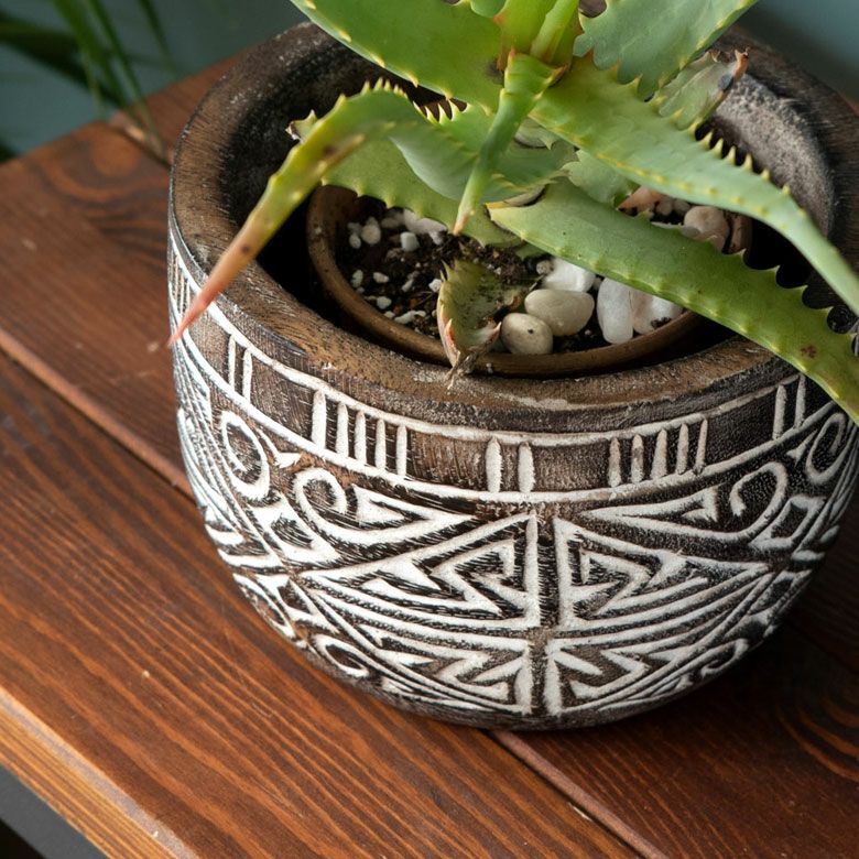 表面に施されたアジアンオーラ漂う彫刻は、インドネシア・スンバ島に伝わる伝統的な文様です。