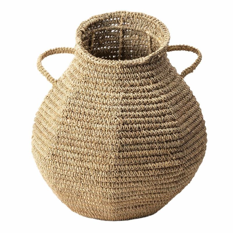 他にはないデザインが個性的な、壺のような形の手編みのバスケット。