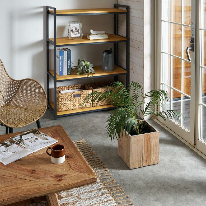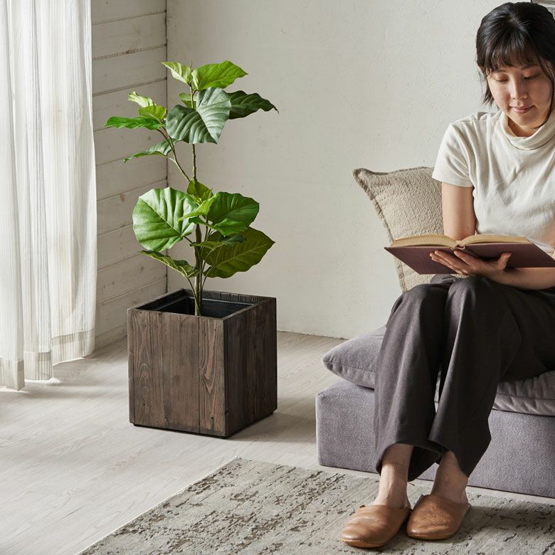 古材ならではのこなれた雰囲気が、観葉植物をぐっと惹きたててくれます。