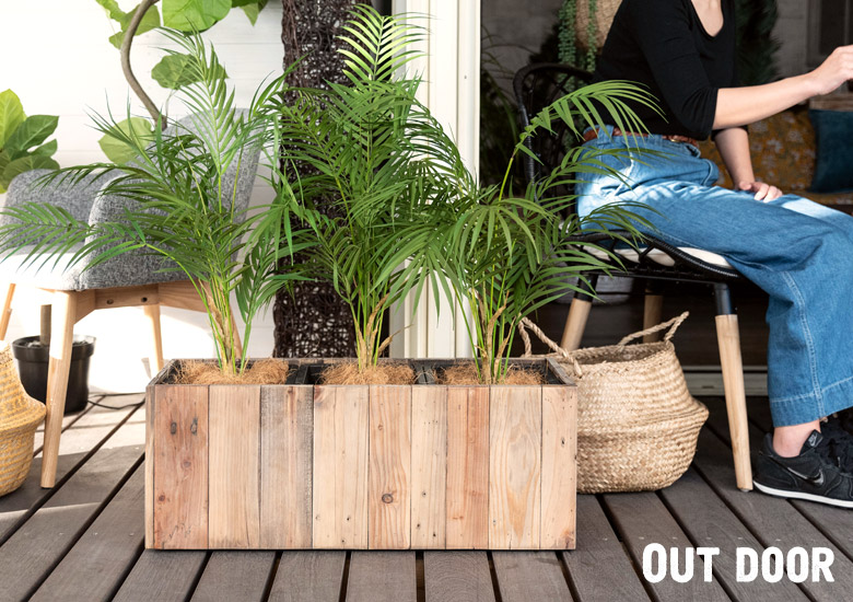 プランターを鉢ごと入れるだけで、旬インテリアに格上げ。