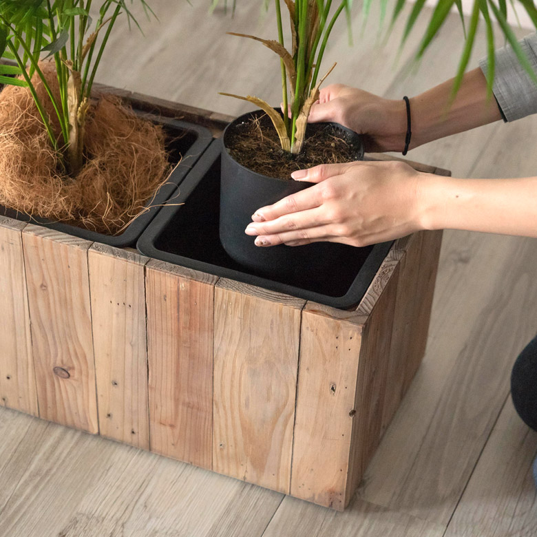 不要になった木材をアップサイクルした、サスティナブルなプランターカバー。