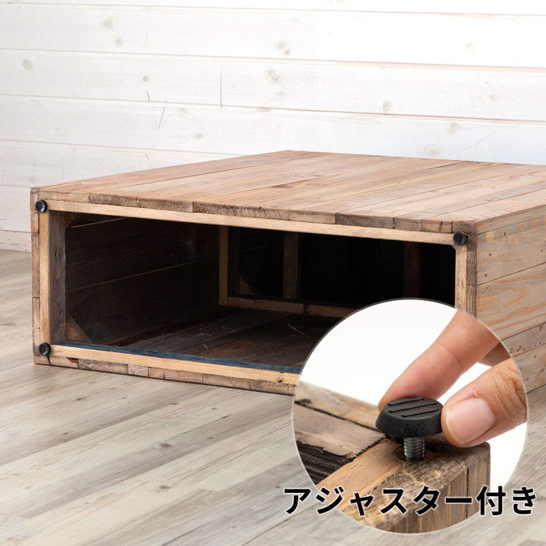 あえて釘跡や傷を残した、リサイクルのパインウッド材で作られています。
