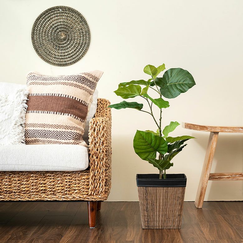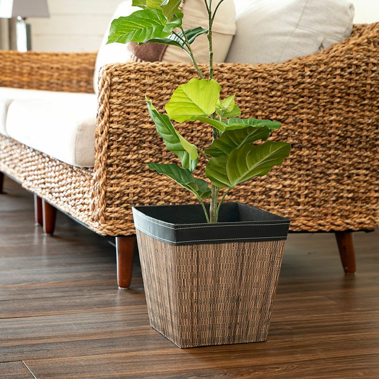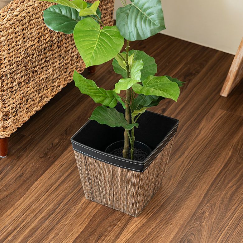 鉢植えやアートプランツを入れてプランターカバーとして使うのもおすすめ。