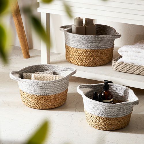 ロープバスケット 自立 ラウンド 重ねて収納 スタッキング ハンドル コットンロープ カラーボックス対応 カウンター収納 リビング ダイニング キッチン 玄関 子供部屋 プレゼント バスケット 3個セット コットンロープ ラッシュ製 持ち手付き バイカラー S.M.L かごバスケット 収納 かご 籠 丸 円形 丸型 プランターカバー 鉢カバー サイズ違い 5号鉢 6号鉢 7号鉢対応 インテリア おしゃれ 北欧 アジアン 雑貨 アジアン雑貨 [set-67119-67121]