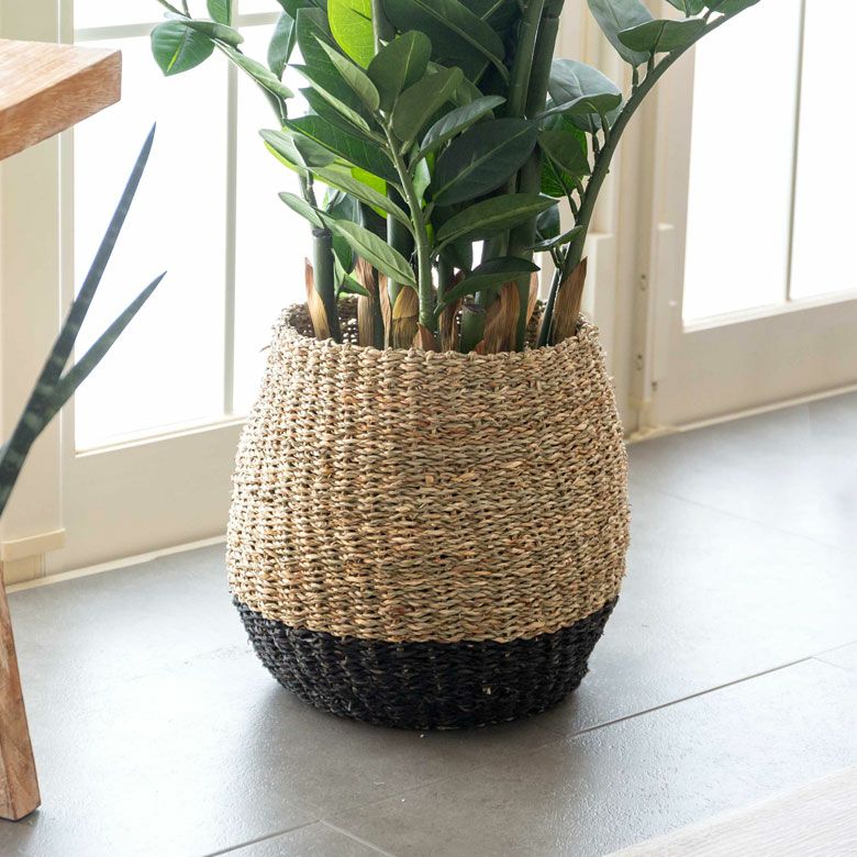 ごみ箱 ダストボックス ガーデニング カゴ 籠 かごバスケット プランターカバー ゴミ箱 バスケット かご シーグラス Mサイズ バイカラー ブラック 黒 [51239]【 W 27cm D 27cm H 28cm 収納バスケット 収納かご おもちゃ入れ 収納ボックス おしゃれ 北欧 かわいい アジアン アジアン雑貨 BOHO ナチュラル 】