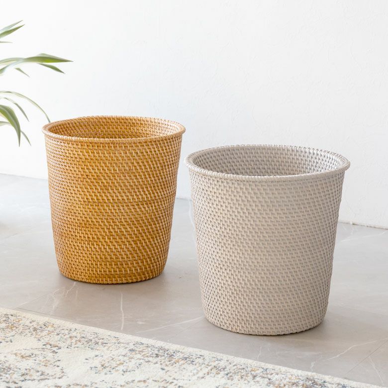 ケース カバー 分別 収納 ボックス ストッカー ホテル カフェ ゴミ箱 ダストボックス おしゃれ バスケット かご カゴ ラタン 籐 ホワイト ナチュラル 約 W 27.5cm D 27.5cm H 28cm [13976]【 ごみ箱 丸型 円形 丸い プランターカバー 7号鉢 スリッパ 荷物 おもちゃ 入れ リビング 寝室 北欧 リゾート コースタル バリ アジアン 雑貨 】