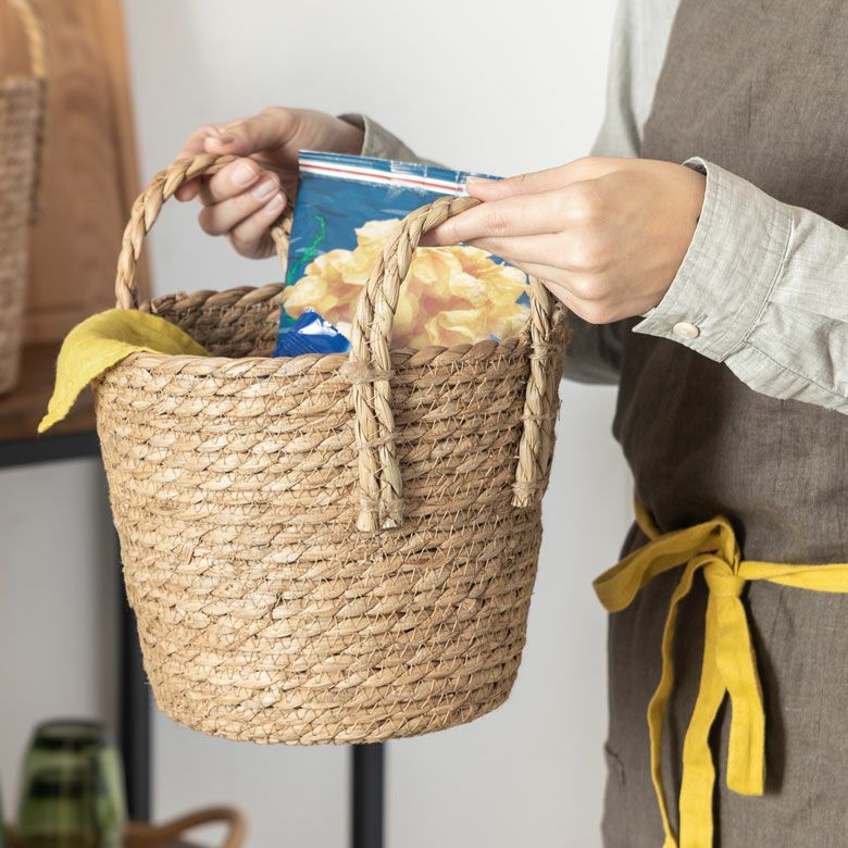 かごバスケット 収納かご 収納バスケット おもちゃ収納 プランターカバー 植木鉢カバー バスケット 持ち手付き ラッシュ製(い草) Sサイズ 約 W 22.5 × D 22.5 × H 19 cm [67084]【 鉢カバー 5号 6.5号 プランター入れ カバー ポット プランツバスケット かご 籠 観葉植物 北欧 おしゃれ アジアン 雑貨 アジアン雑貨 】