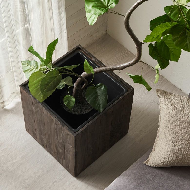 ・リサイクルウッドを使用したプランターカバーは、観葉植物を鉢ごと入れるだけで、お部屋をおしゃれに演出
