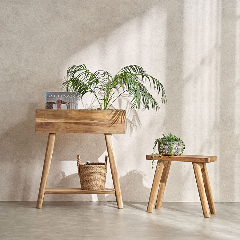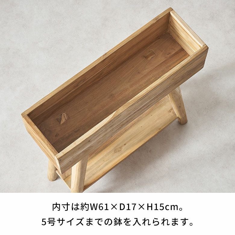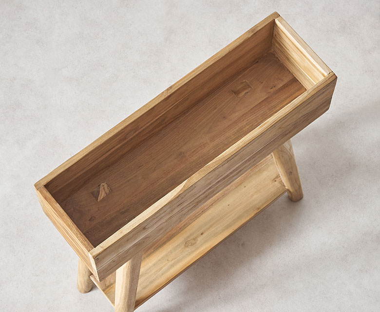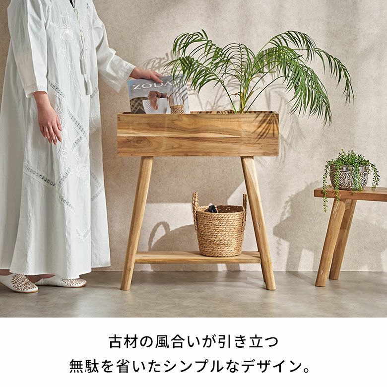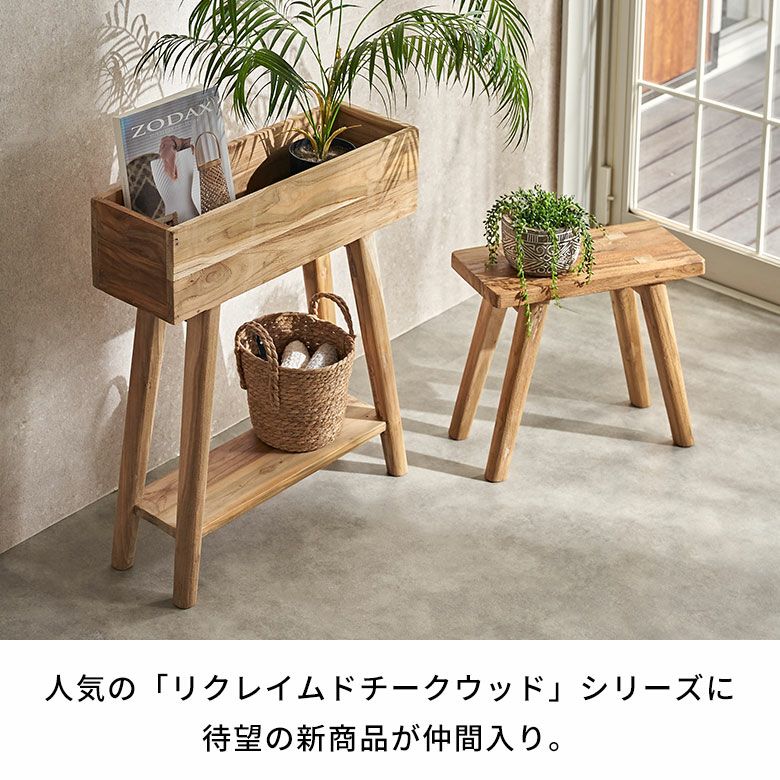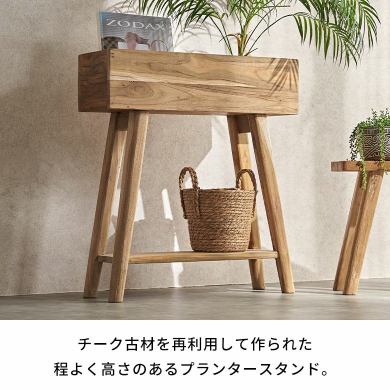 チークのリクレイムドウッド(古材)を、再利用して作られたプランタースタンド。