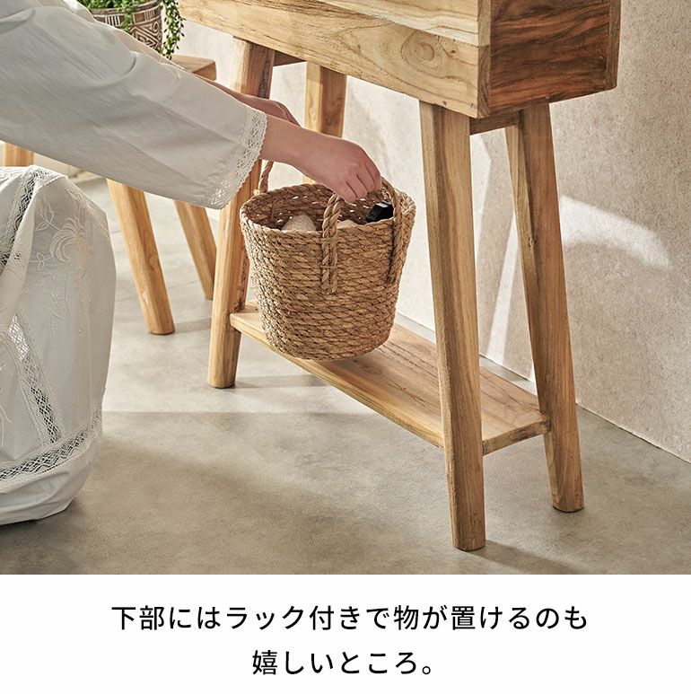 下部には棚板付きで物が置けるのも嬉しいところ。
