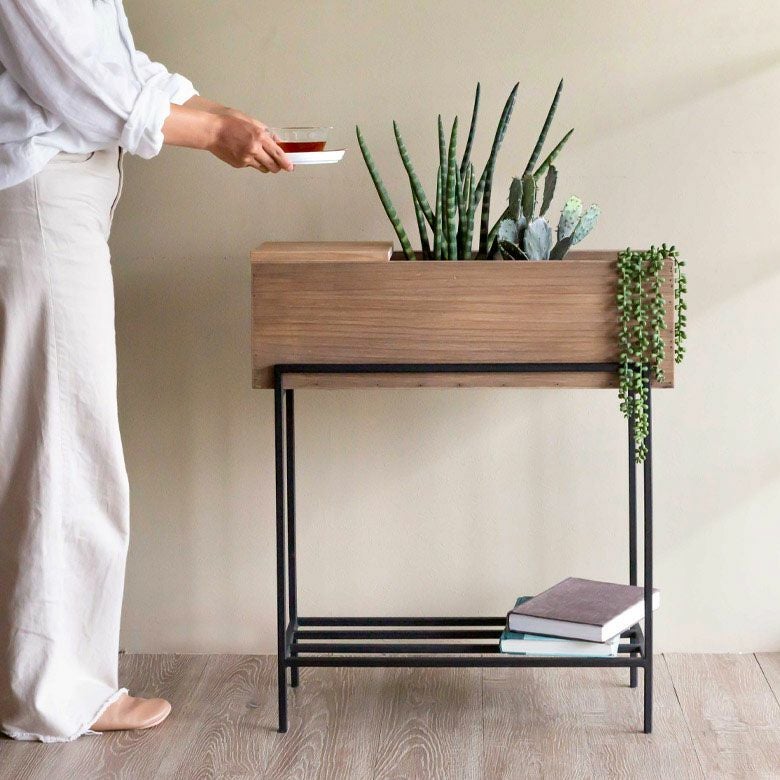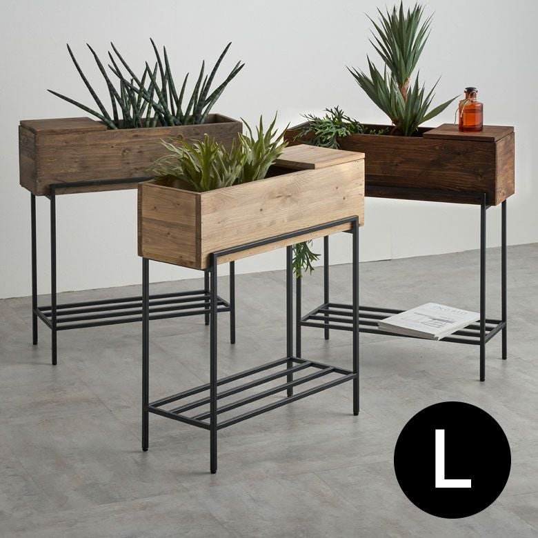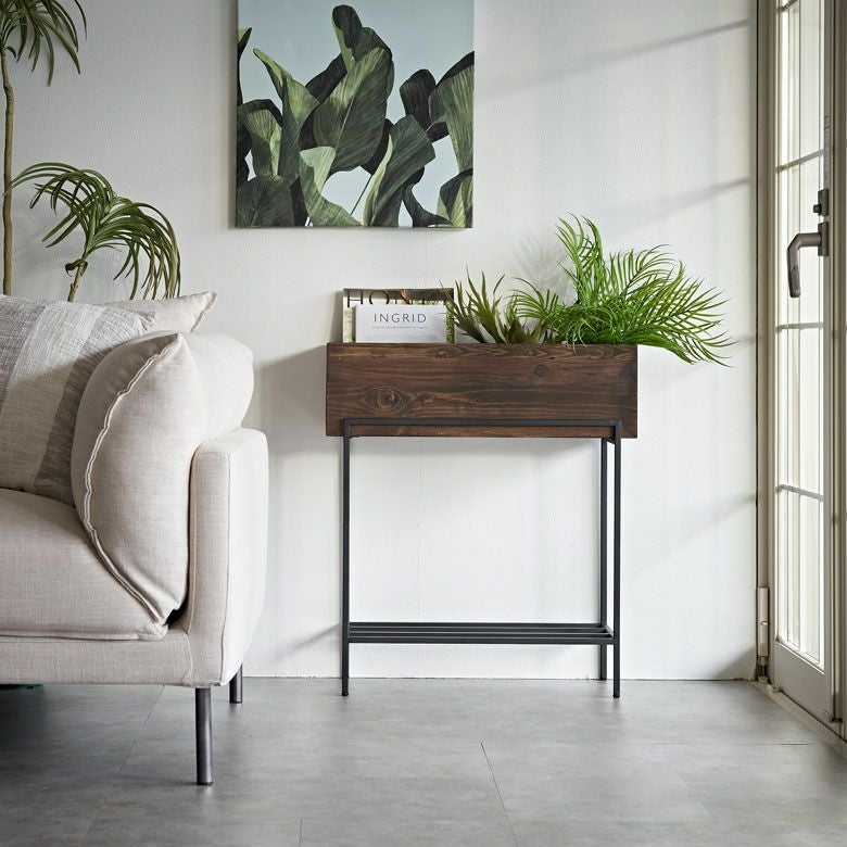 ・リサイクルウッドを使用したプランターシェルフ [Lサイズ]は、観葉植物を飾るだけでなく、収納やサイドテーブルとしても利用できる多機能アイテム
