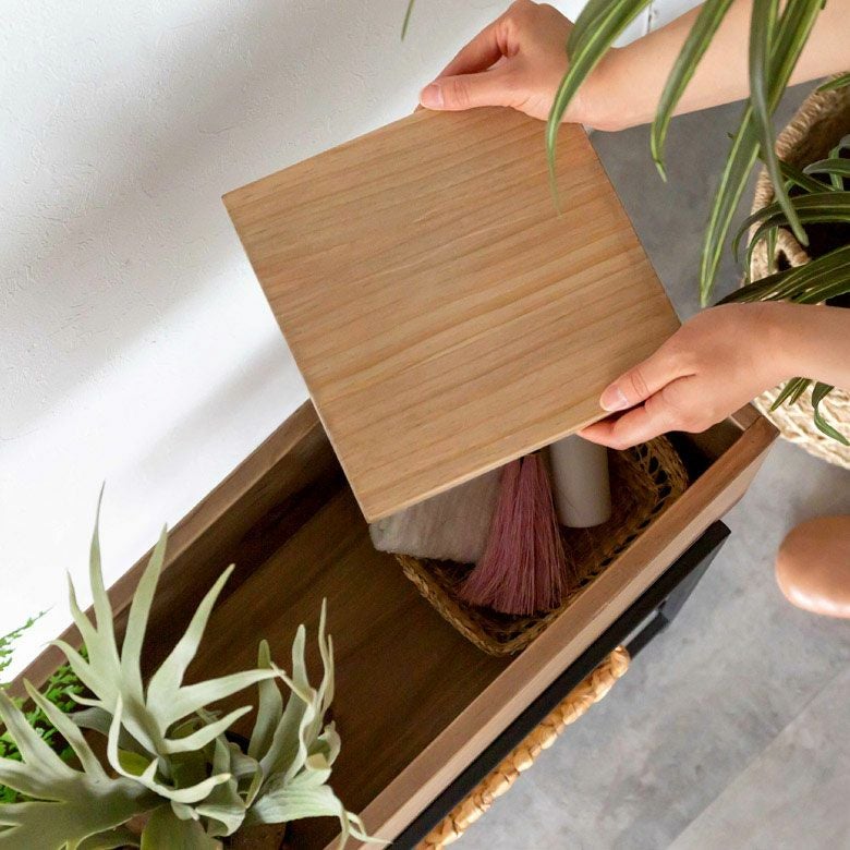・天板付きで、隠したい物をさっと収納できるスペースがあり、便利に使えます