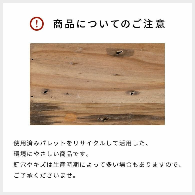 あえて釘跡や傷を残し、傷跡や木目の模様、色味にも個体差があったりなど