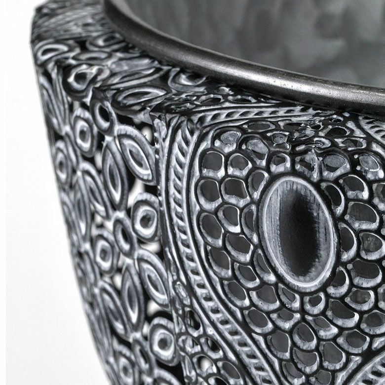 繊細な透かし彫りのアラベスク模様が美しいフラワーポット。