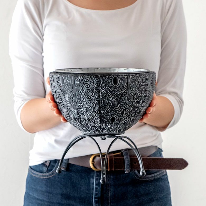 透かし彫りから覗く内ポットのシルバーもさりげなくシックな印象です。