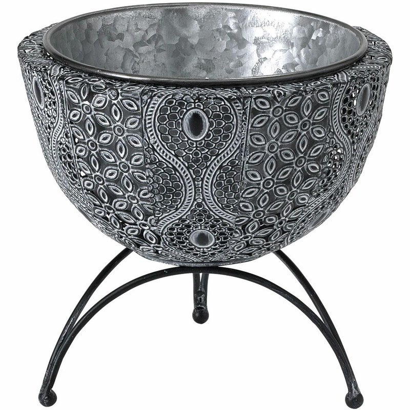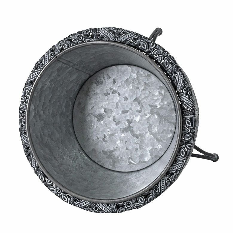 メタルポット ディスプレイ ブラックアイアン アイアン脚 フラワーポット プランターカバー スチール 脚付き Sサイズ 直径22.5cm [90089]【 ディスプレイスタンド フラワースタンド アイアン ブラック グレー 植木鉢カバー 透かし模様 透かし彫り アラベスク柄 おしゃれ ポット型 スタンド型 リゾート シャビーシック SPICE】
