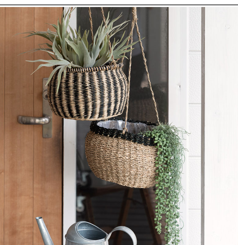 ・シーグラスのハンギングプランターカバーは、ナチュラルな素材感と手作りの温かみが魅力