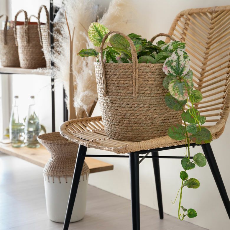 かごバスケット 収納かご 収納バスケット おもちゃ収納 プランターカバー 植木鉢カバー バスケット 持ち手付き ラッシュ製(い草) Sサイズ 約 W 22.5 × D 22.5 × H 19 cm [67084]【 鉢カバー 5号 6.5号 プランター入れ カバー ポット プランツバスケット かご 籠 観葉植物 北欧 おしゃれ アジアン 雑貨 アジアン雑貨 】