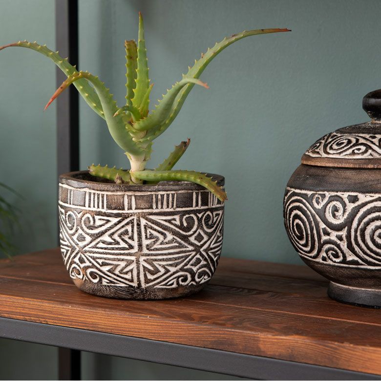 植木鉢 BOHO エスニック アジアン 民族 トライバル アフリカン プランターカバー プランター ポット Sサイズ 木製 ウッド スンバ W 15cm D 15cm H 10.5cm [13940-s]【 ハンドメイド オブジェ 木彫り 彫刻 カービング 鉢 観葉植物 グリーン フラワー ボヘミアン コースタル モダン おしゃれ アジアン雑貨 リゾート バリ島 】
