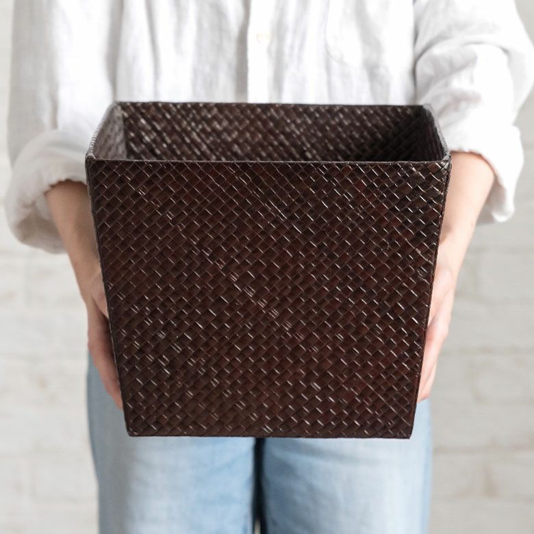 レザーのような編み目のアジアンバスケット。ゴミ箱はもちろんプランターカバーや収納バスケットにも使えるバリ島の人気アジアン雑貨 パンダンで編まれたアジアンバスケット[6238]Sサイズ 【四角形 ごみ箱 ゴミ箱 ダストBOX くずかご ダストボックス ごみばこ プランターカバー 鉢カバー プランター入れ インテリア おしゃれ キッチン 縦型 便利 アジアン リビング バリ雑貨 アジアン雑貨】]【アジアン雑貨のアジア工房本店】