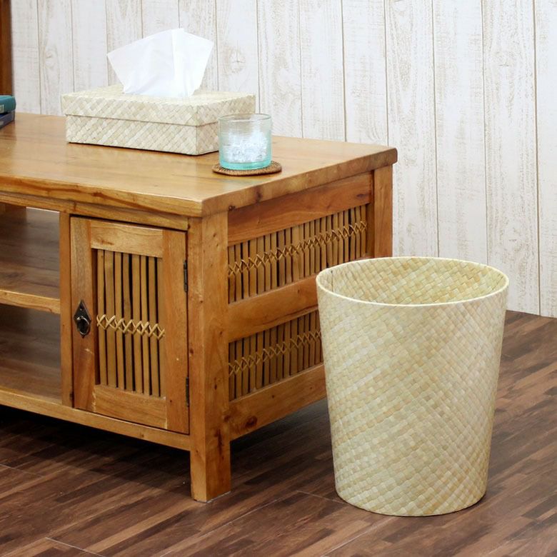 ゴミ箱はもちろんプランターカバーや収納バスケットにも使える パンダンで編まれたアジアンごみ箱[丸型]ナチュラル色[6235] 【ダストボックス くずいれ ゴミ箱 寝室 鉢カバー リビング バリ雑貨 アジアン雑貨 おしゃれ アジア雑貨 かわいい シンプル 部屋 籠 収納かご 収納カゴ 収納バスケット 和室 和風 インテリア 南国リゾート】
