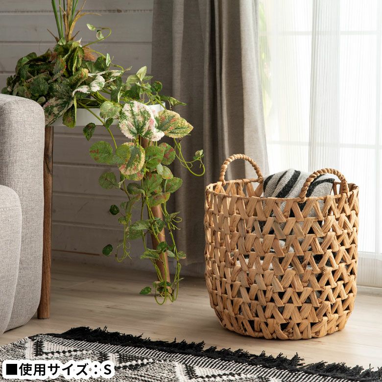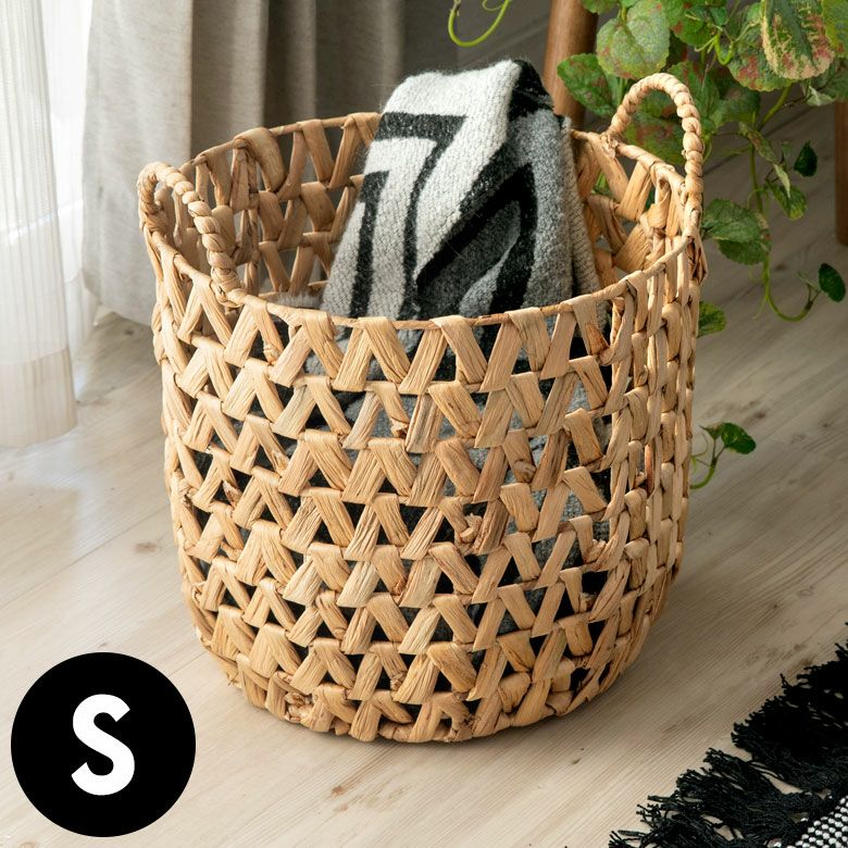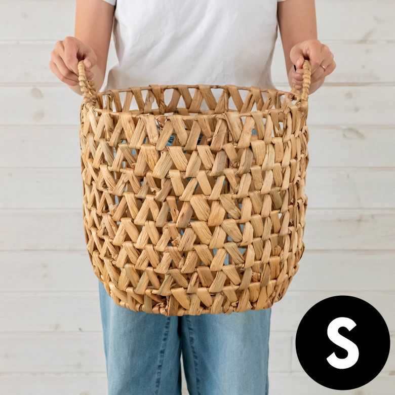 かごバスケット 収納かご ナチュラル雑貨 取っ手付き ラウンド型 バスケット かご ウォーターヒヤシンスで編まれた透かし編みバスケット 持ち手つき Sサイズ ナチュラル ラウンド 透かし編み [51217]【 カゴ 籠 プランターカバー 収納バスケット お洒落 おしゃれ リビング ベッドルーム 寝室 棚下 テーブル下 アジアン 雑貨 アジア 】