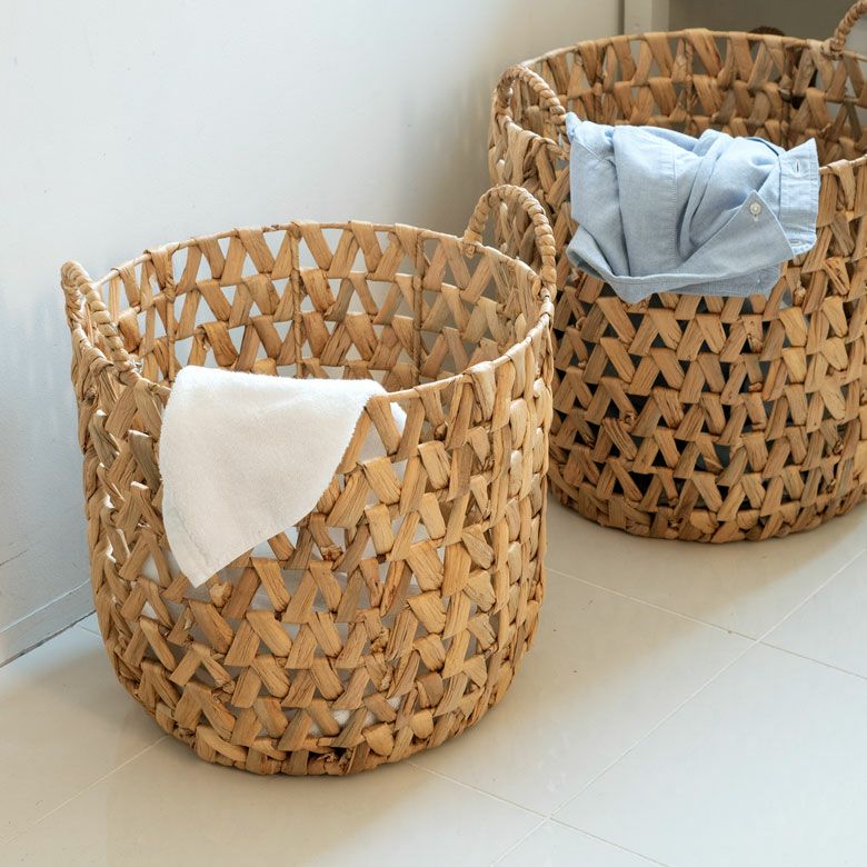 プランターカバー おもちゃ箱 野菜 果物 ストッカー キッチン かご バスケット ウォーターヒヤシンス M L 2個セット 約 W 46cm D 46cm H 27cm [set-51280-51281]【 カゴ 収納かご 収納バスケット 収納ボックス 荷物 おもちゃ 雑貨 衣類 収納 入れ ケース ハンドル 持ち手 付き おしゃれ 北欧 リゾート ナチュラル アジアン 雑貨 】