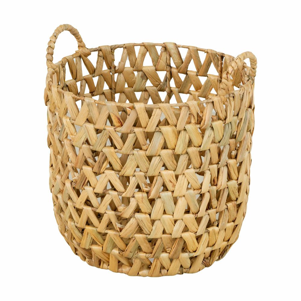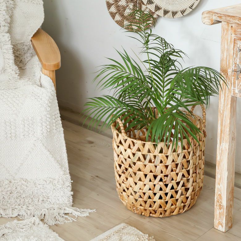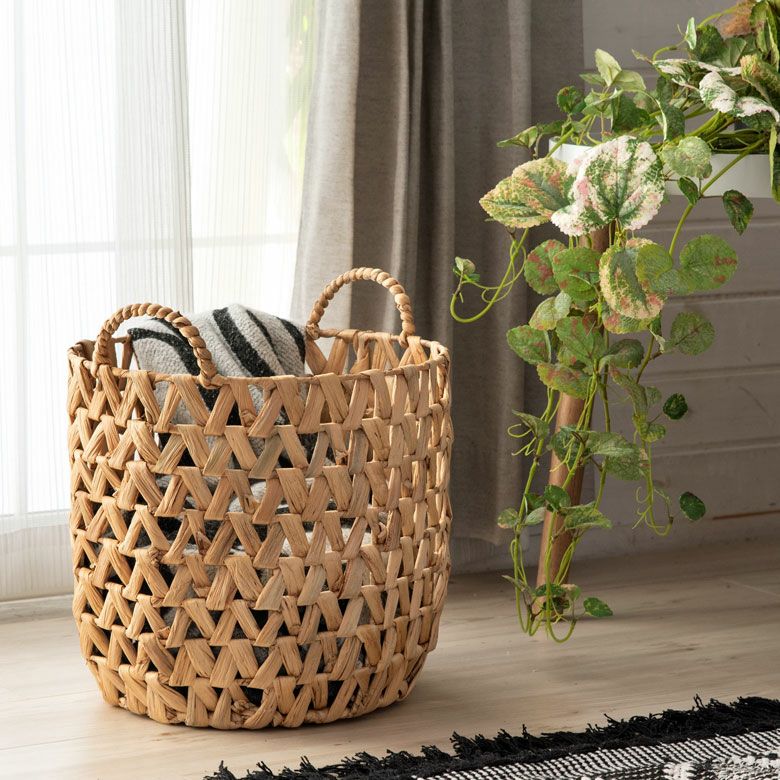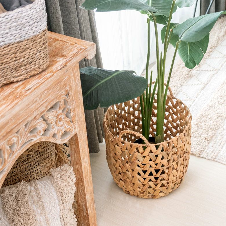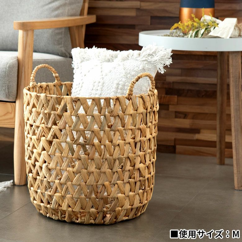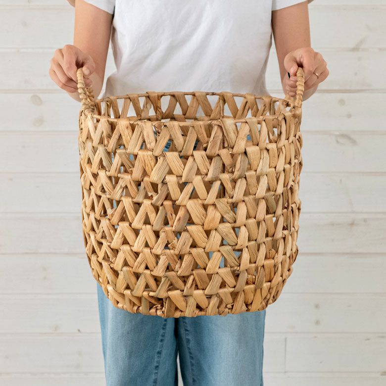 かごバスケット 収納かご ナチュラル雑貨 取っ手付き ラウンド型 バスケット かご ウォーターヒヤシンスで編まれた透かし編みバスケット 持ち手つき Mサイズ ナチュラル ラウンド 透かし編み [51218]【 カゴ 籠 プランターカバー 収納バスケット お洒落 おしゃれ リビング ベッドルーム 寝室 棚下 テーブル下 アジアン 雑貨 アジア 】