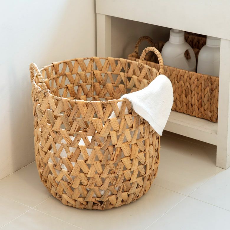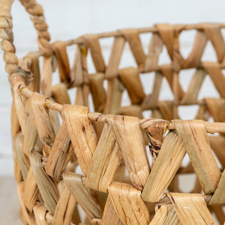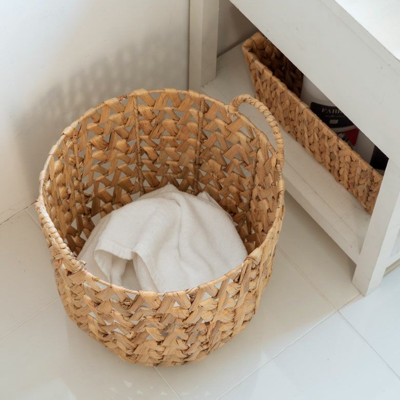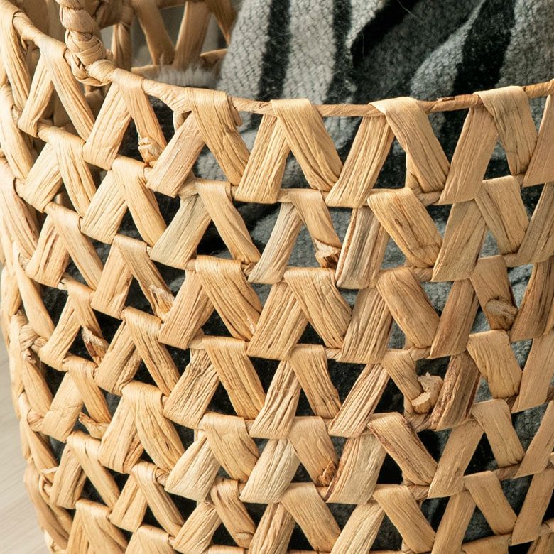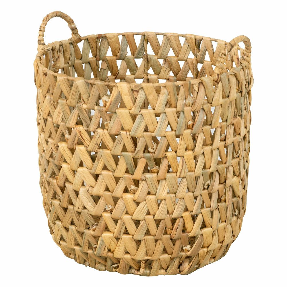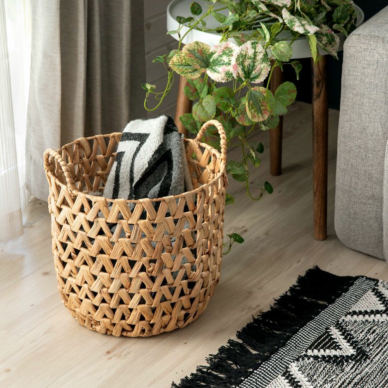 かごバスケット 収納かご ナチュラル雑貨 取っ手付き ラウンド型 バスケット かご ウォーターヒヤシンスで編まれた透かし編みバスケット 持ち手つき Mサイズ ナチュラル ラウンド 透かし編み [51218]【 カゴ 籠 プランターカバー 収納バスケット お洒落 おしゃれ リビング ベッドルーム 寝室 棚下 テーブル下 アジアン 雑貨 アジア 】
