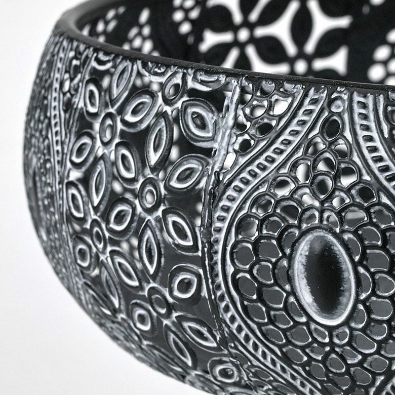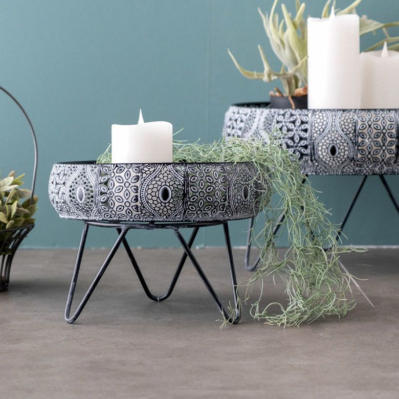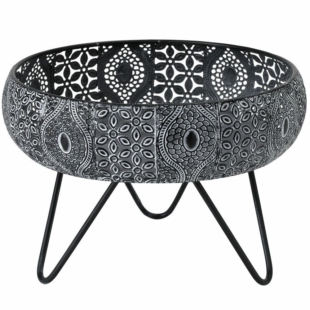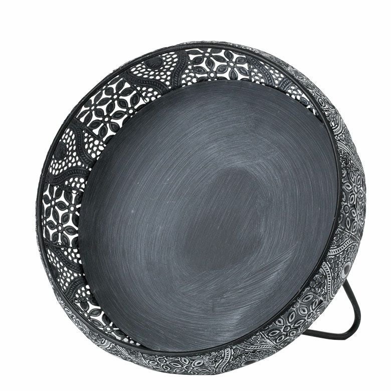 メタルバスケット ディスプレイ ブラックアイアン アイアン脚 フラワーバスケット プランターカバー スチール 脚付き Sサイズ 直径28cm [90087]【 ディスプレイスタンド フラワースタンド アイアン ブラック グレー 植木鉢カバー 透かし模様 透かし彫り アラベスク柄 おしゃれ トレイ型 スタンド型 リゾート シャビーシック SPICE】
