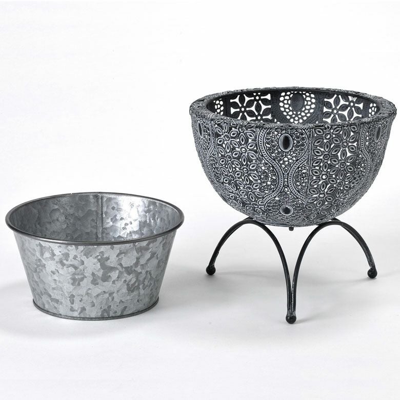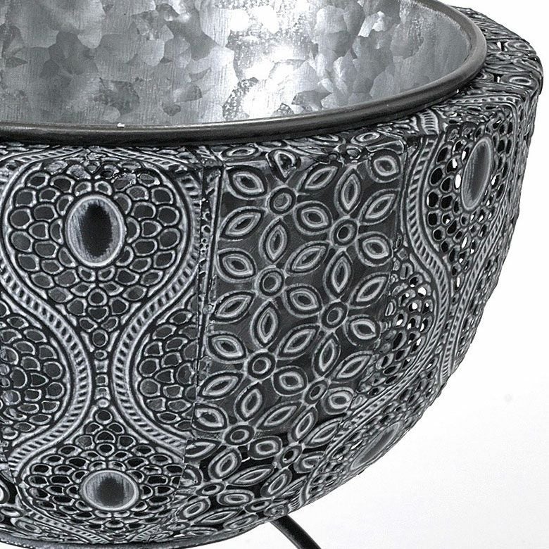 メタルポット ディスプレイ ブラックアイアン アイアン脚 フラワーポット プランターカバー スチール 脚付き Sサイズ 直径22.5cm [90089]【 ディスプレイスタンド フラワースタンド アイアン ブラック グレー 植木鉢カバー 透かし模様 透かし彫り アラベスク柄 おしゃれ ポット型 スタンド型 リゾート シャビーシック SPICE】