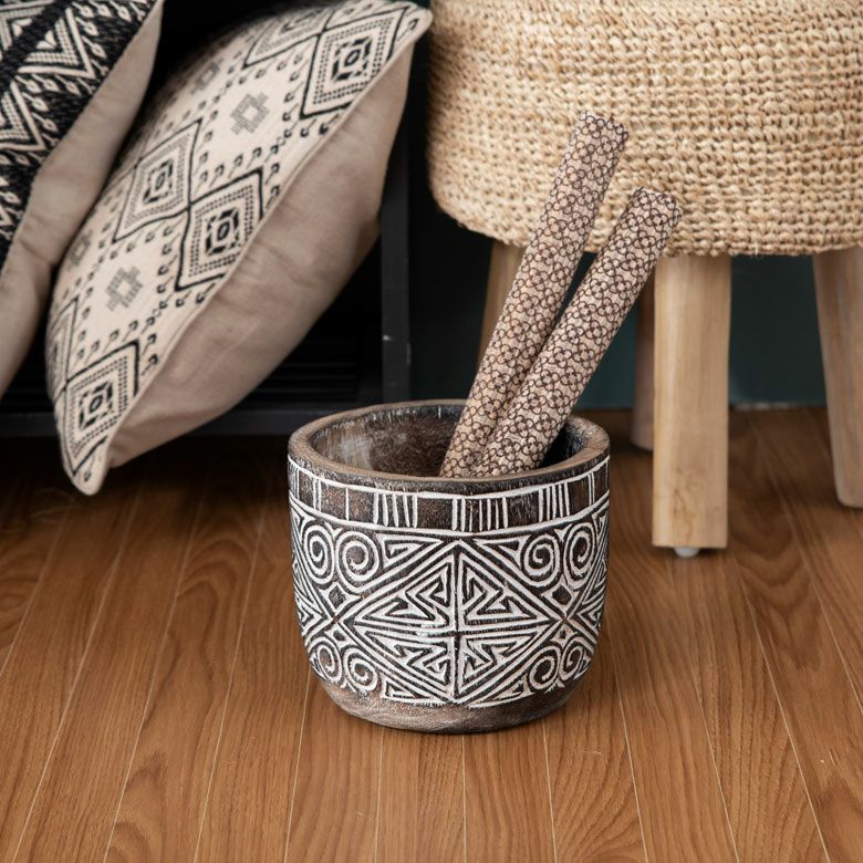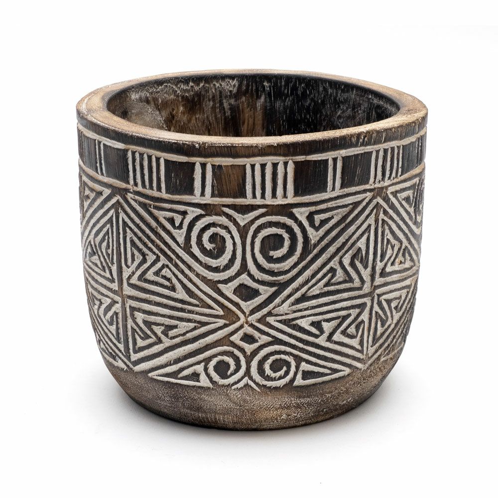植木鉢 BOHO エスニック アジアン 民族 トライバル アフリカン プランターカバー プランター ポット Mサイズ 5号鉢 木製 ウッド スンバ W 20cm D 20cm H 17cm [13940-m]【 ハンドメイド オブジェ 木彫り 彫刻 カービング 鉢 観葉植物 グリーン フラワー ボヘミアン コースタル モダン おしゃれ アジアン雑貨 リゾート バリ島 】