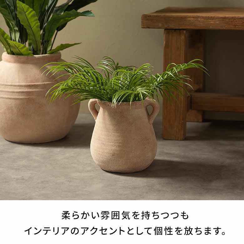 インテリアグリーン 室内 屋内 造花 アートグリーン 人工 フェイク アート カフェ 店舗 スタイリッシュ レストラン 装飾 観葉植物 多肉植物 アートデコレーション ガーデニング 室内装飾 プランターカバー 鉢カバー テラコッタ 素焼き 陶器 約 W 23cm D 23cm H 23cm ナチュラル 底穴なし ハンドル付き 壺 植物 グリーン フラワー 花 デコレーション ディスプレイ オブジェ リビング 玄関 リゾート おしゃれ 北欧 インテリア 雑貨 アジアン [94767]