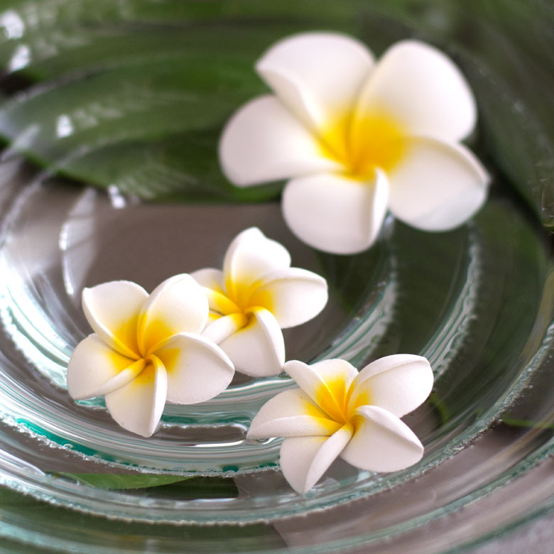 バリ島のホテルやスパに行くと、テーブルやベッドに上に置かれてたり