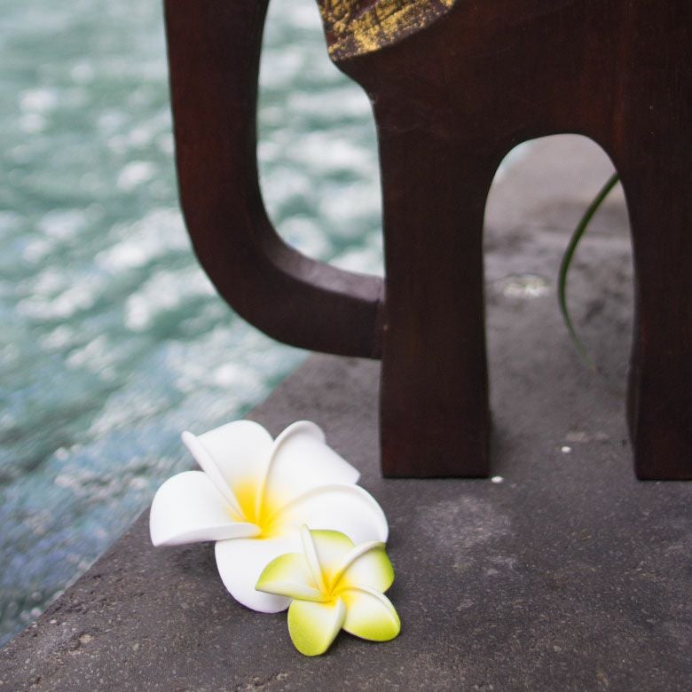 ホテルやスパに行くとテーブルやベッドなど、いたるところで見かけるお花です。