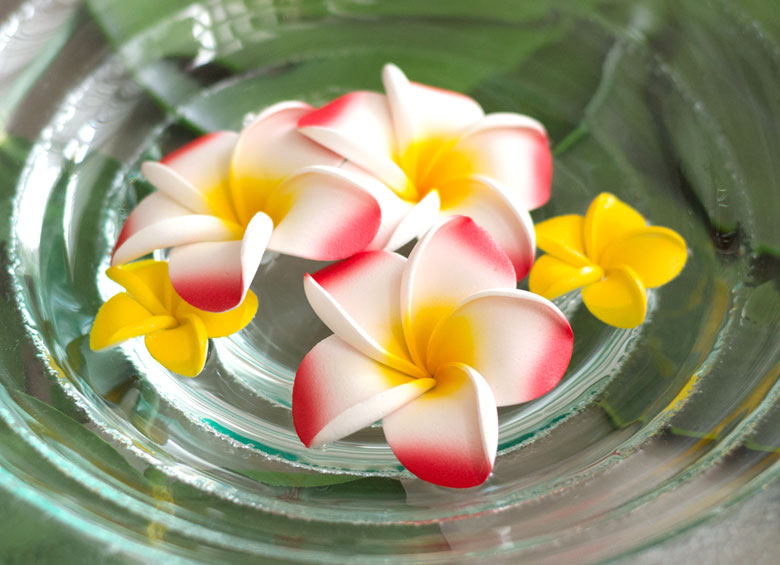 ホテルやスパに行くとテーブルやベッドなど、いたるところで見かけるお花です。