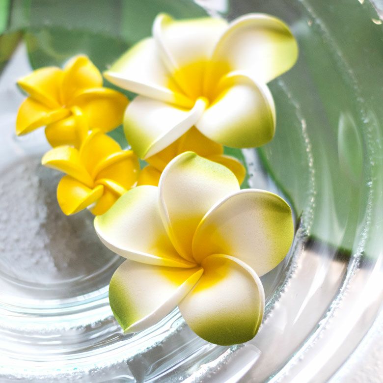 ホテルやスパに行くとテーブルやベッドなど、いたるところで見かけるお花です。