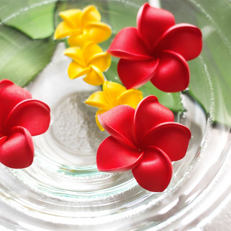 ホテルやスパに行くとテーブルやベッドなど、いたるところで見かけるお花です。