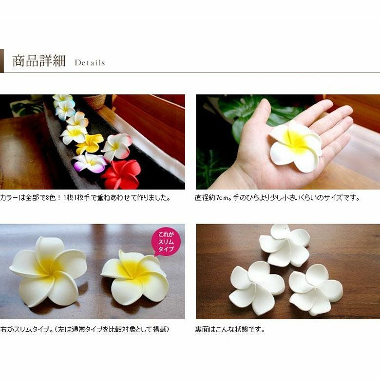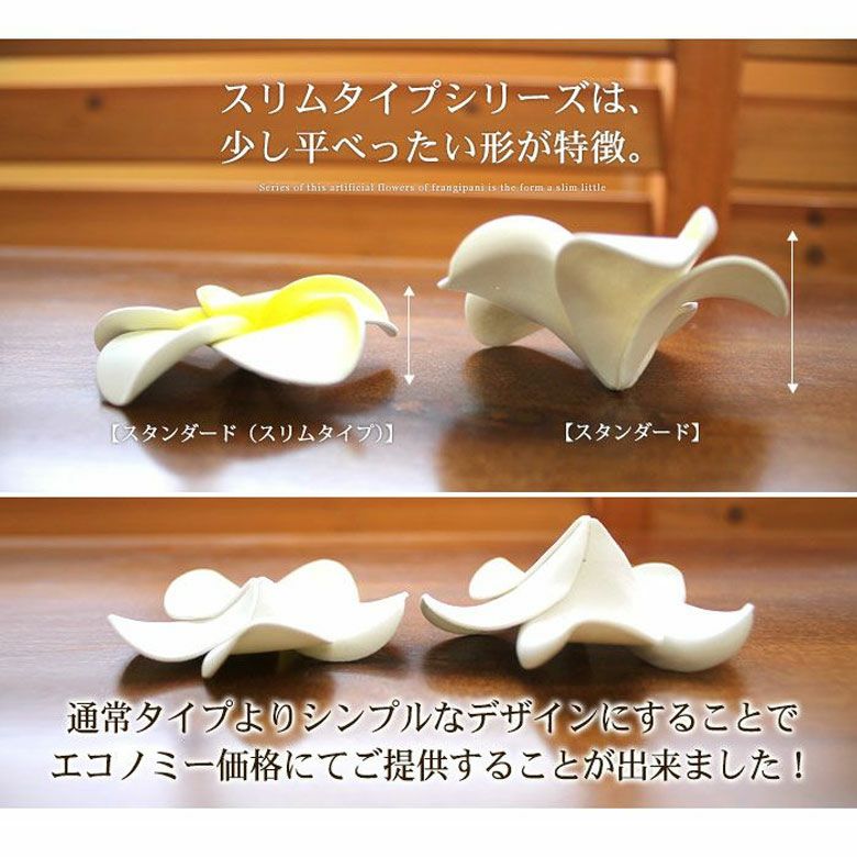 メール便に対応した、お得なスリムタイプ(薄型)のプルメリア造花が登場!こちらはスタンダードタイプの厚さ約1.8cm以下の【スリムタイプ】です。