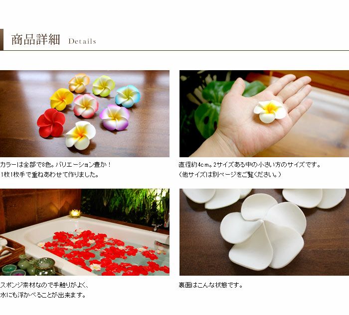ガラスの水盤やスパボウルなどに水を張って、その上にこちらの造花を浮かべるとよりバリのリゾートの雰囲気を味わえます。