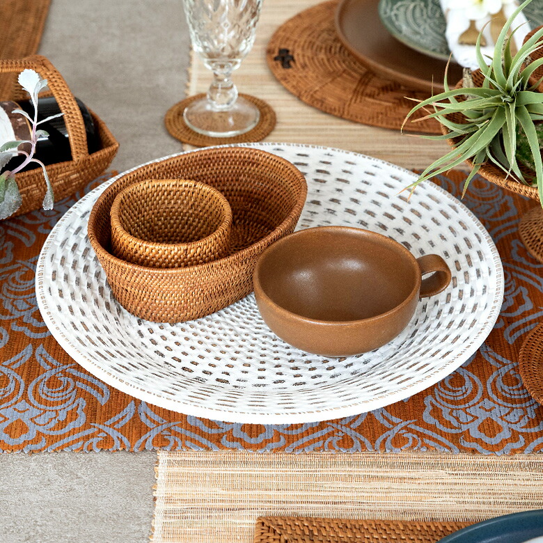 ラタンのラウンド型トレイ |