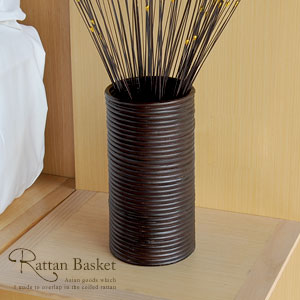 ぐるぐるラタンの円筒バスケット