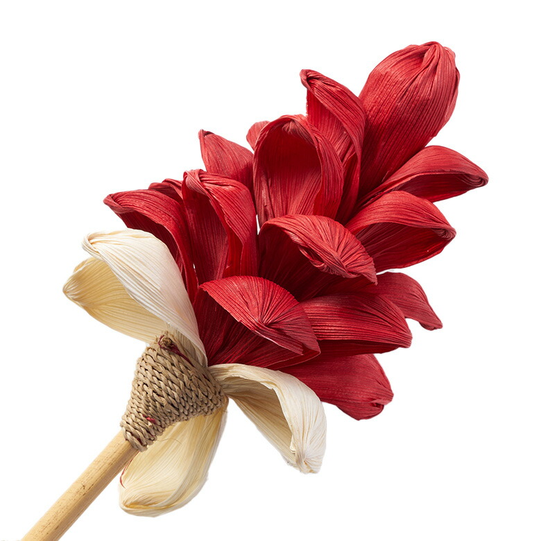 つぼみはコーンリーフ(とうもろこしの葉)、軸は竹でできていて