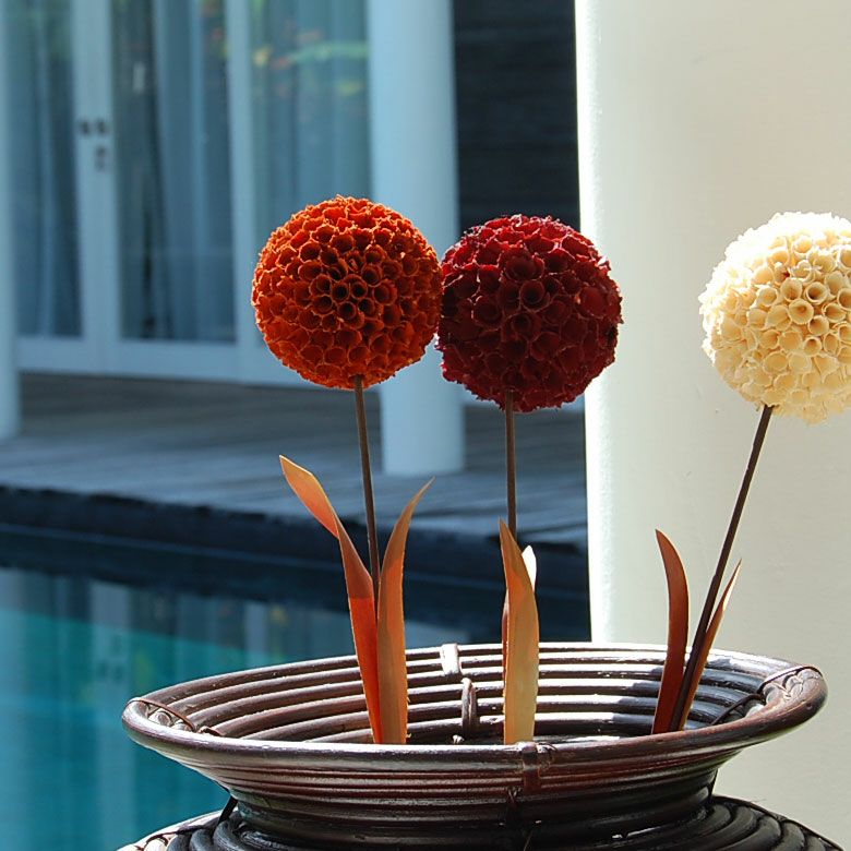 丸いボールの花を組み合わせて作られたアートプランツ。