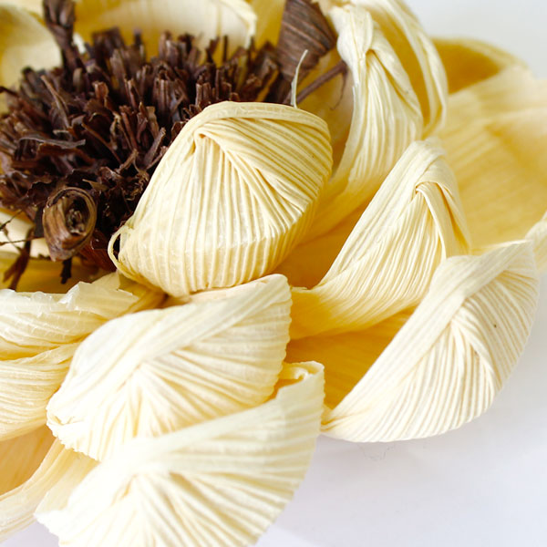 とうもろこしの葉を一枚一張り合わせて、蓮の花を表現したハンドメイドアイテム。