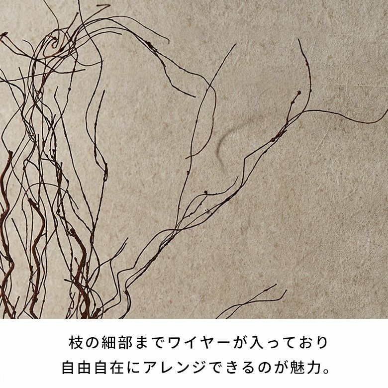 本物の木の枝のような自然な風合いを再現したフェイクツイッグ。枝の細部までワイヤーが入っており、好きな形に曲げたりねじったりして、オリジナリティあふれるディスプレイを作れます。水やりが必要ないため、インテリアを手軽に華やかにしたい方にもおすすめです。