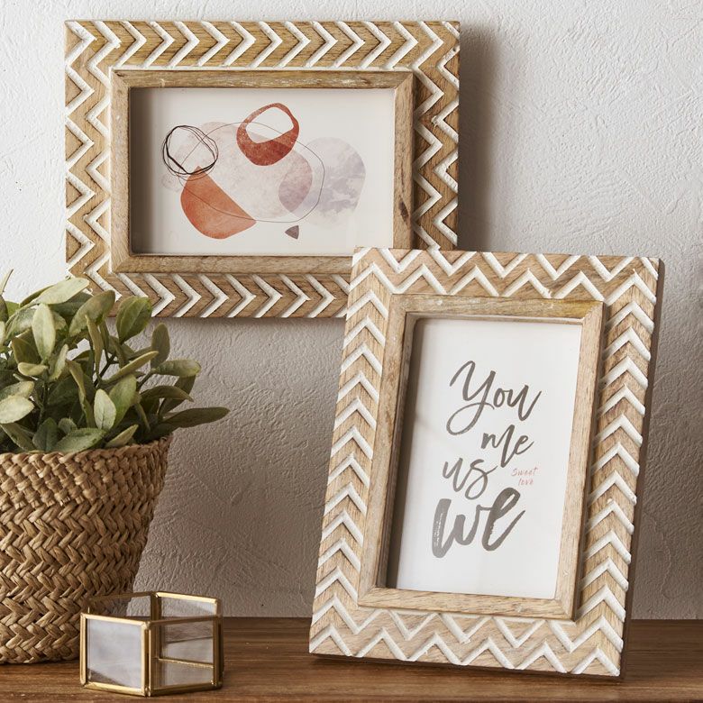 温かみの感じられる天然木、マンゴーウッドで出来た写真立て。
