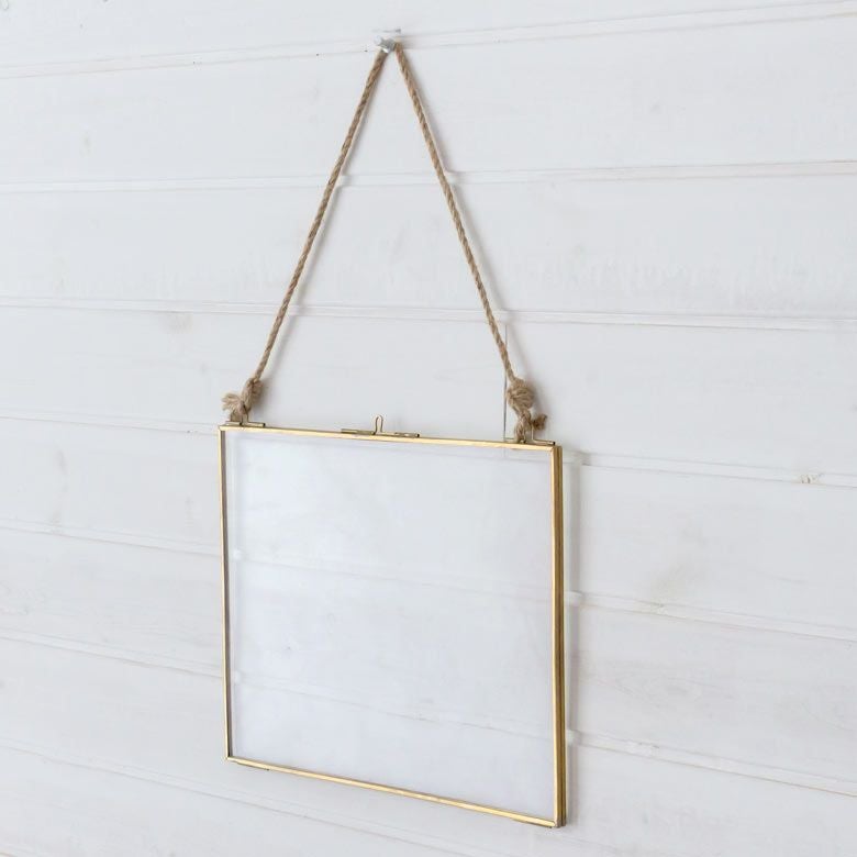 ガラスと真鍮でできたハンギングフォトフレーム