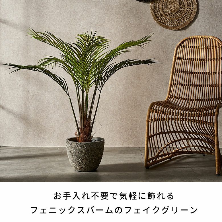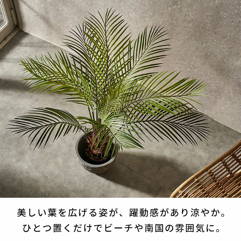 存在感のあるヤシを、自宅で手軽に楽しめるフェイクグリーンです。