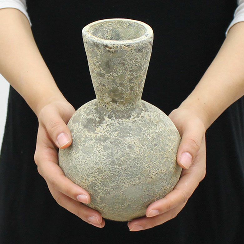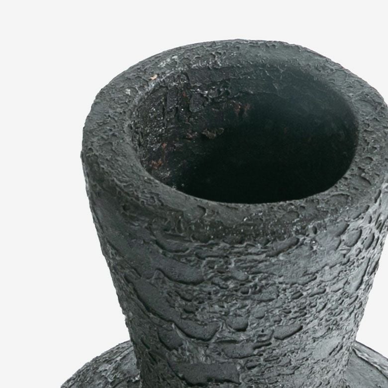 青銅の錆や鉄瓶を思わせる、ざらつきのある質感が魅力のフラワーベース。